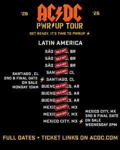 AC/DC, a lendária banda com vendas de múltiplos milhões de álbuns, anunciou hoje, para a alegria de milhões de fãs, a continuação da turnê “POWER UP”.