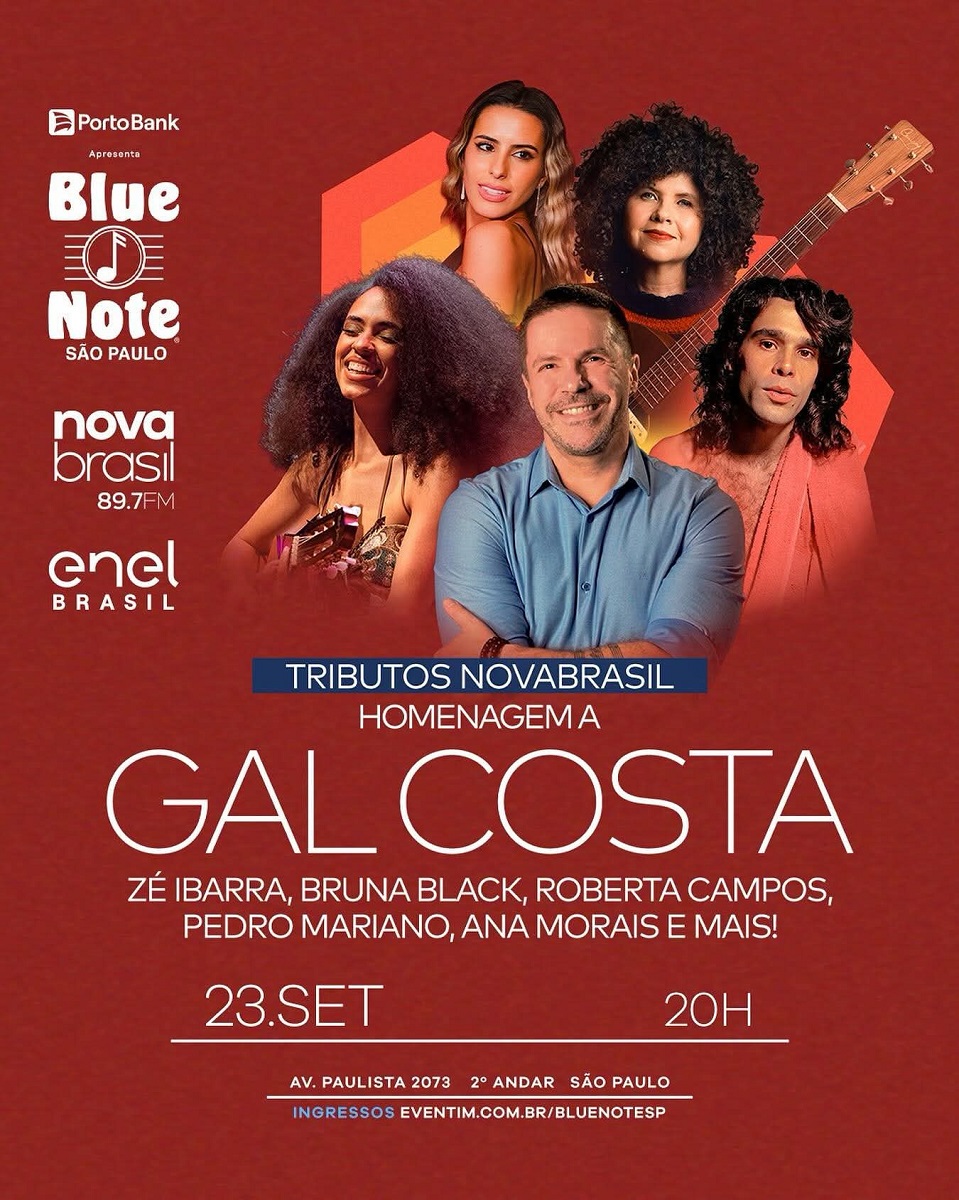 O show em tributo a Gal Costa acontece no dia 23 de setembro, no Blue Note, e contará com as vozes de Zé Ibarra, Roberta Campos, Ana Morais, Bruna Black e Pedro Mariano, que também está à frente da direção musical. A iniciativa que busca honrar a memória e a obra de artistas fundamentais para a identidade cultural do Brasil já realizou shows de grande sucesso em homenagem a Gonzaguinha, em julho, e a Raul Seixas, no último mês.