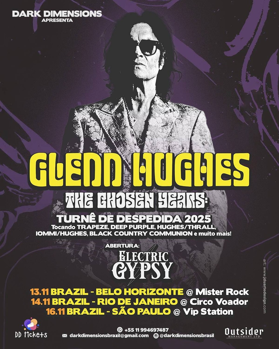 Nos últimos anos, Glenn Hughes manteve uma relação próxima e afetiva com o público brasileiro, que sempre o recebeu com entusiasmo e reverência. Desde os anos 1990, o artista tem se apresentado regularmente no país, consolidando uma conexão emocional rara entre artista e fãs. Agora, com a The Chosen Years Tour, essa história ganha seu capítulo final — não como um adeus melancólico, mas como uma celebração de vida, arte e legado.