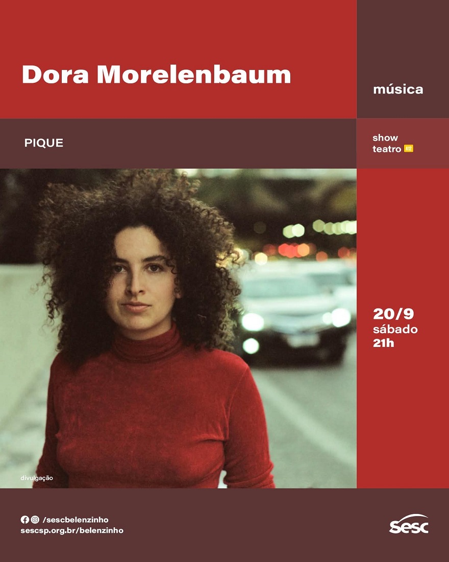 No dia 20 de setembro no Sesc Belenzinho recebe a cantora Dora Morelenbaum, o show será no Teatro, com ingressos de R$ 18 (Credencial Sesc) a R$ 60 (inteira).