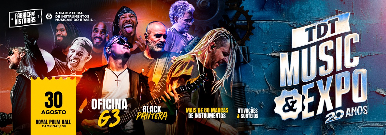 20º TDT Music & Expo será realizado entre 27 e 30 de agosto no Royal Palm Hall; bandas como Black Pantera e Oficina G3 marcam presença