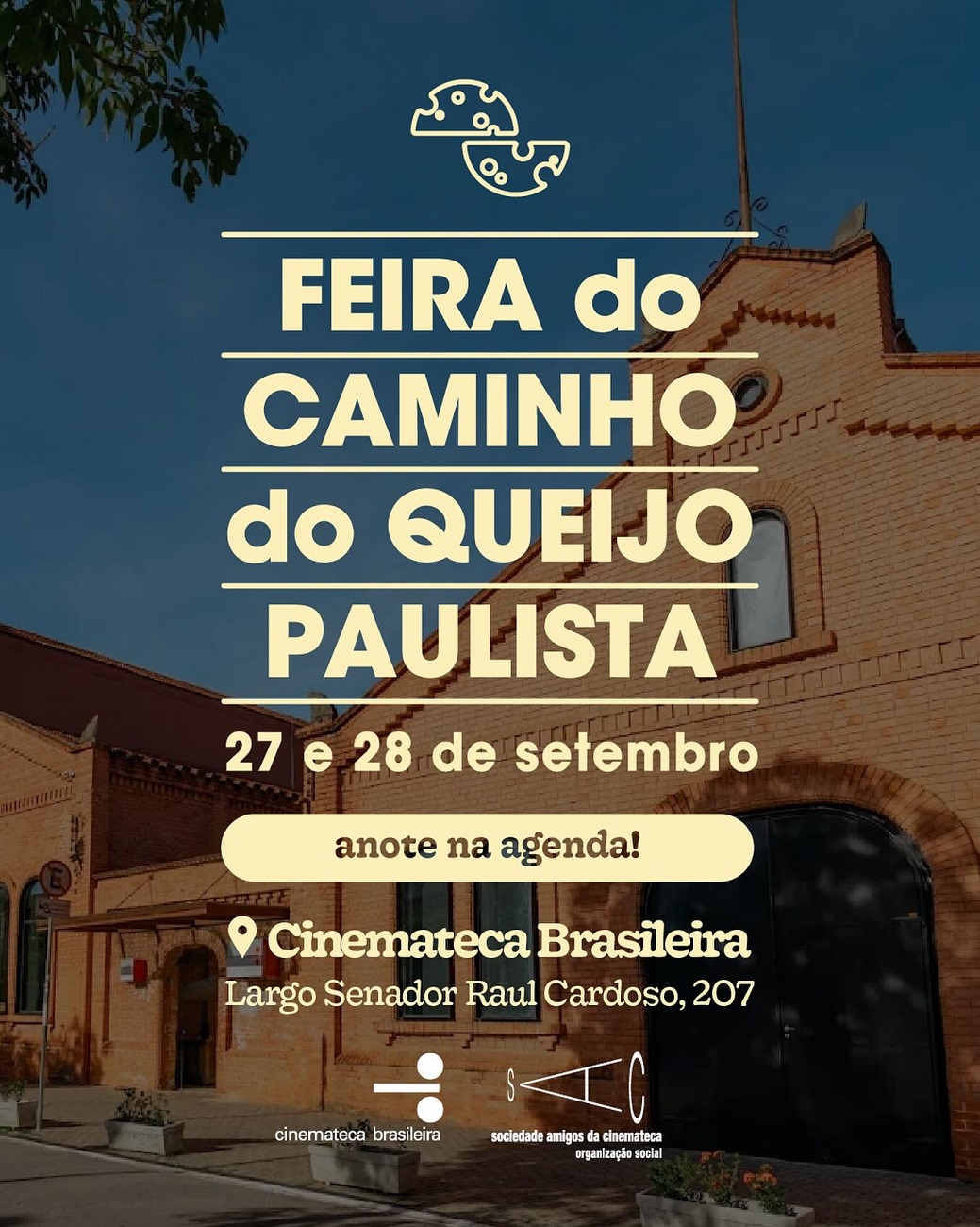 Nos próximos dias 27 e 28 de setembro, a Cinemateca Brasileira vai sediar, pela primeira vez, a Feira do Caminho do Queijo Paulista – iniciativa criada pelo coletivo formado por 16 produtores que, há 8 anos, se uniram com o objetivo de difundir e trazer ainda mais  visibilidade à produção queijeira do estado de São Paulo, reconhecida como referência nacional e internacionalmente.