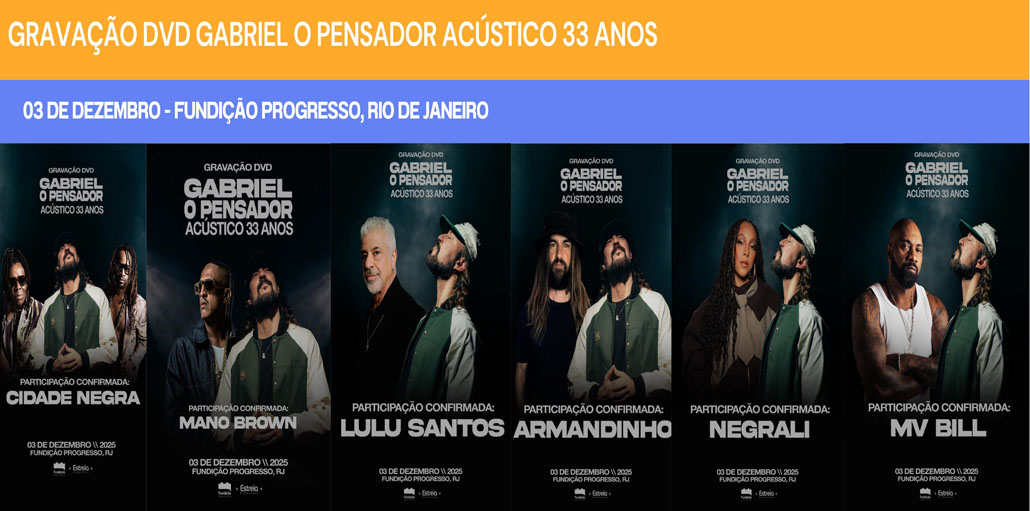 Com um formato ao mesmo tempo intimista e festivo, a apresentação promete evidenciar ainda mais a força das letras e a poesia que sempre foram a essência do Pensador. O show não apenas celebra sua trajetória, mas também reafirma seu papel como um dos artistas mais influentes da música nacional. Prepare-se para uma noite histórica, onde ritmo, poesia e sentimento se encontram para homenagear uma carreira brilhante e cheia de significado. O espetáculo promete encantar fãs de todas as gerações e consolidar ainda mais o legado de Gabriel o Pensador na música brasileira.