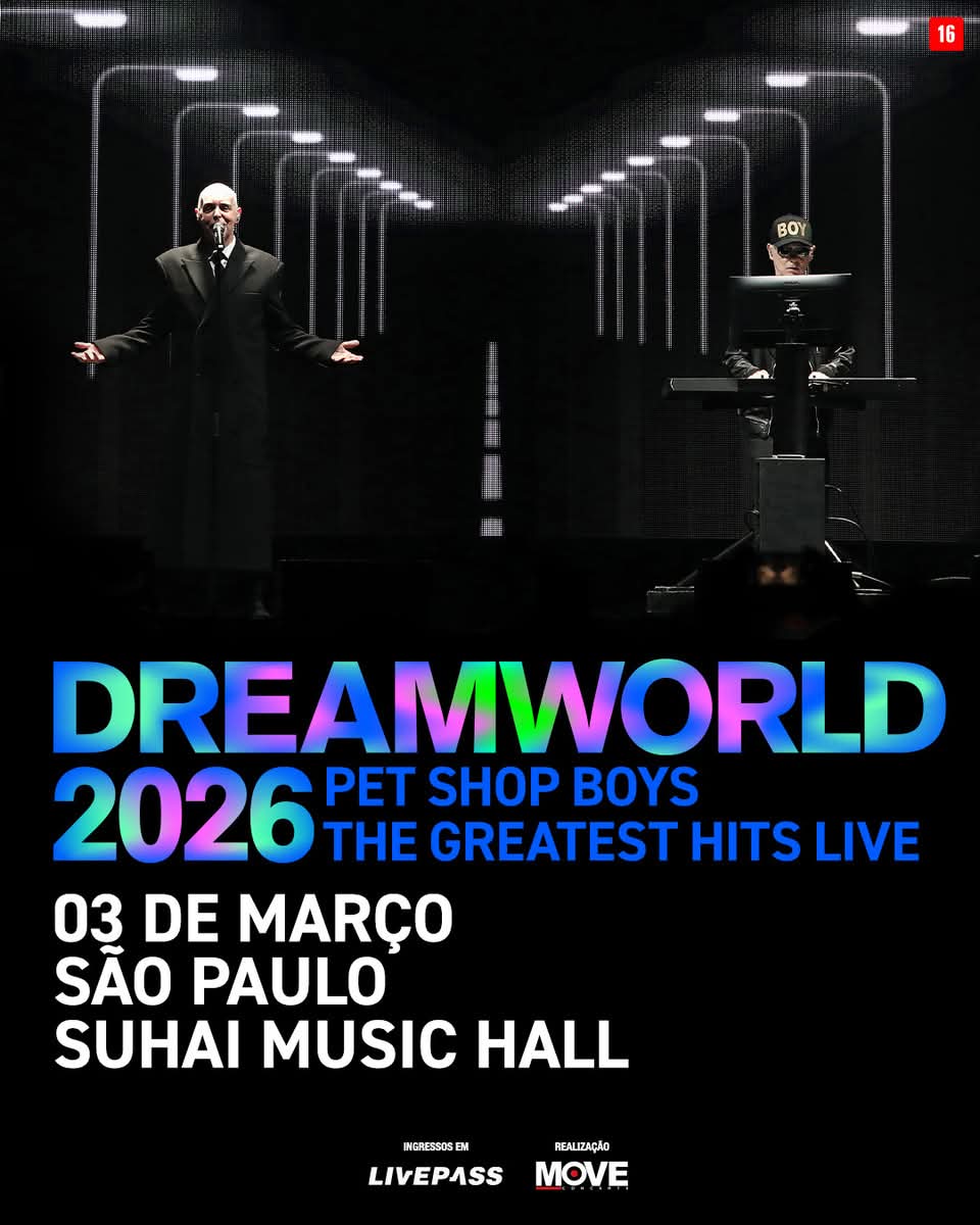 A icônica dupla britânica Pet Shop Boys, formada por Neil Tennant e Chris Lowe, confirma uma apresentação única no Brasil com a turnê Dreamworld: The Greatest Hits Live. O show acontece na Suhai Music Hall, em São Paulo, na terça-feira, 3 de março de 2026, com produção da Move Concerts.