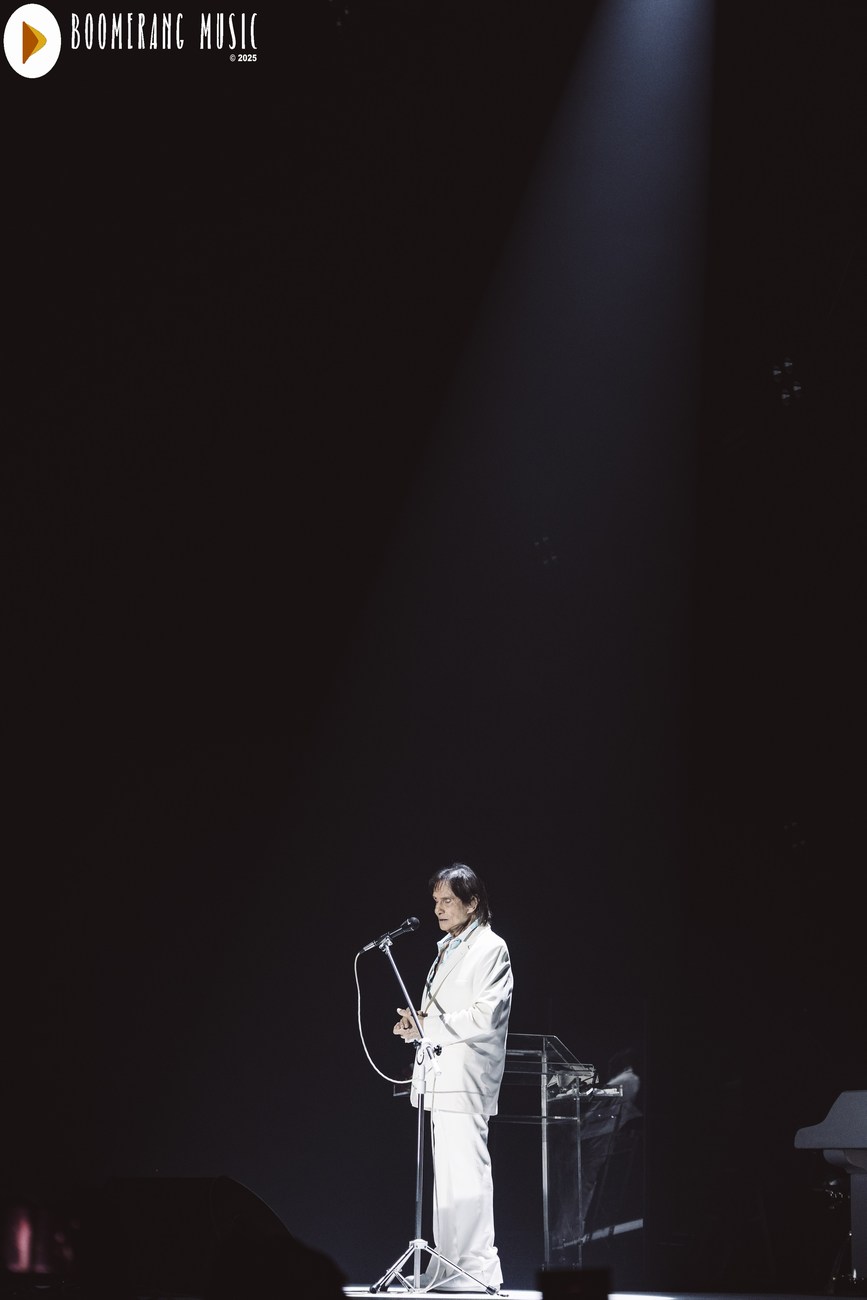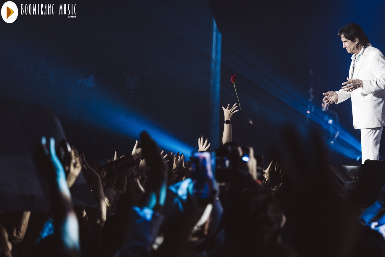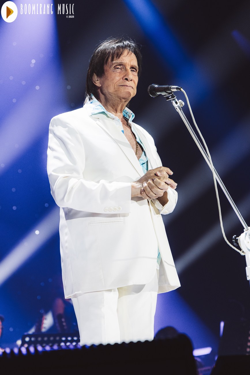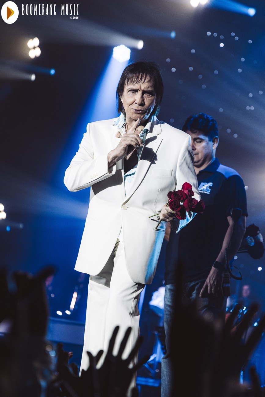 A parte mais romântica do show veio com interpretações impecáveis de “Desabafo”, “Detalhes” e “Outra Vez”. Aqui, Roberto mostrou domínio absoluto da emoção, conduzindo as canções com o equilíbrio preciso entre fragilidade e força que só ele domina. A presença de “Alga Marinha” deu um brilho especial ao repertório, agradando especialmente os fãs mais atentos à fase setentista do artista.