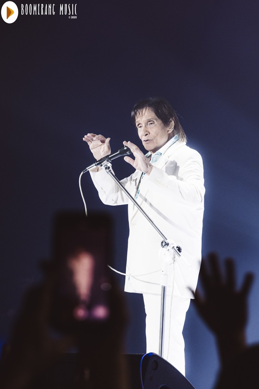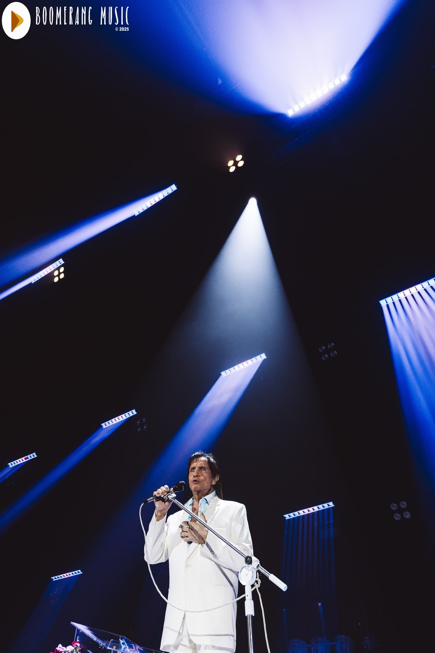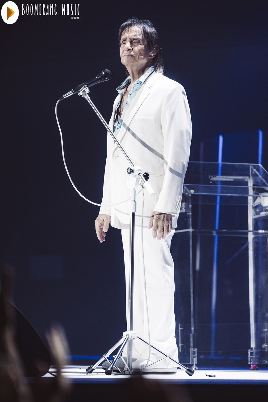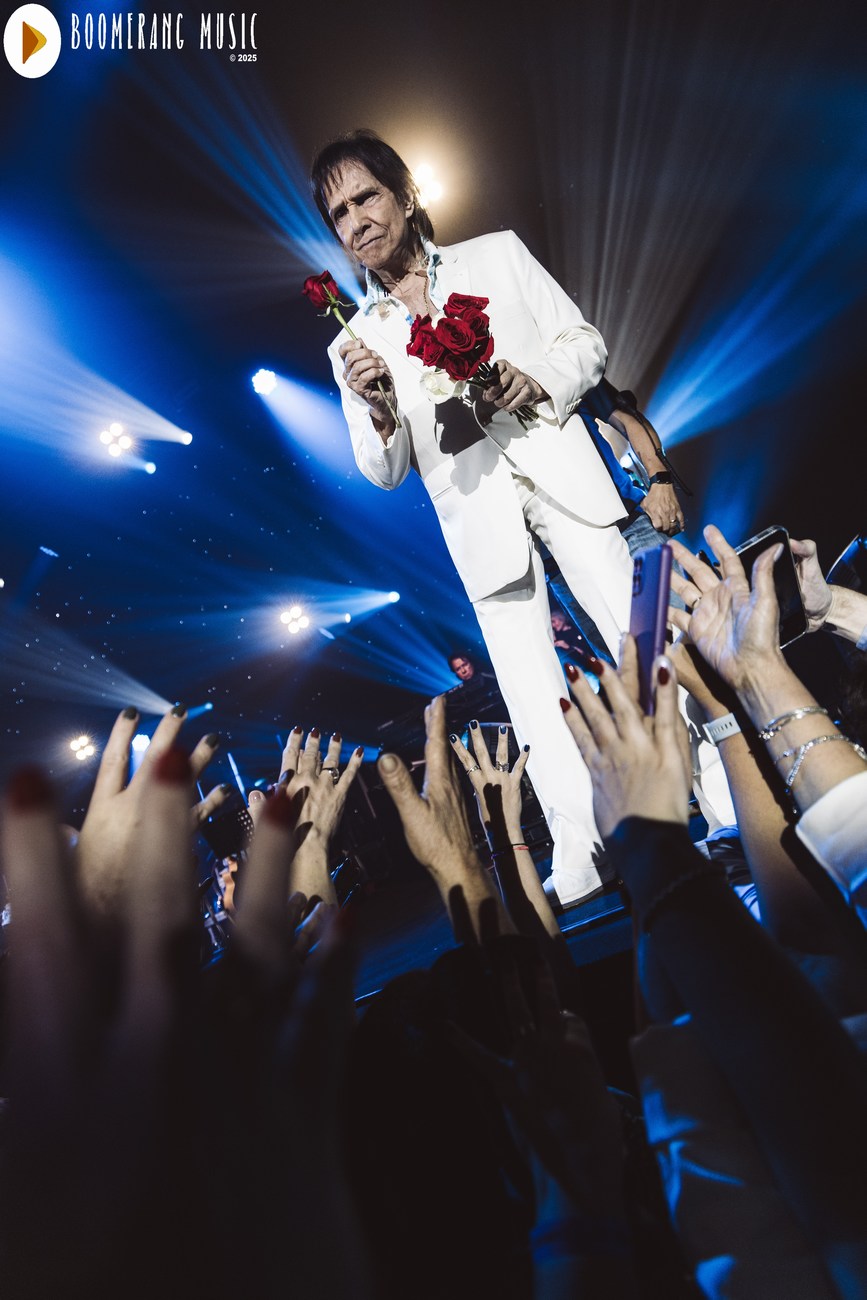 A parte mais romântica do show veio com interpretações impecáveis de “Desabafo”, “Detalhes” e “Outra Vez”. Aqui, Roberto mostrou domínio absoluto da emoção, conduzindo as canções com o equilíbrio preciso entre fragilidade e força que só ele domina. A presença de “Alga Marinha” deu um brilho especial ao repertório, agradando especialmente os fãs mais atentos à fase setentista do artista.
