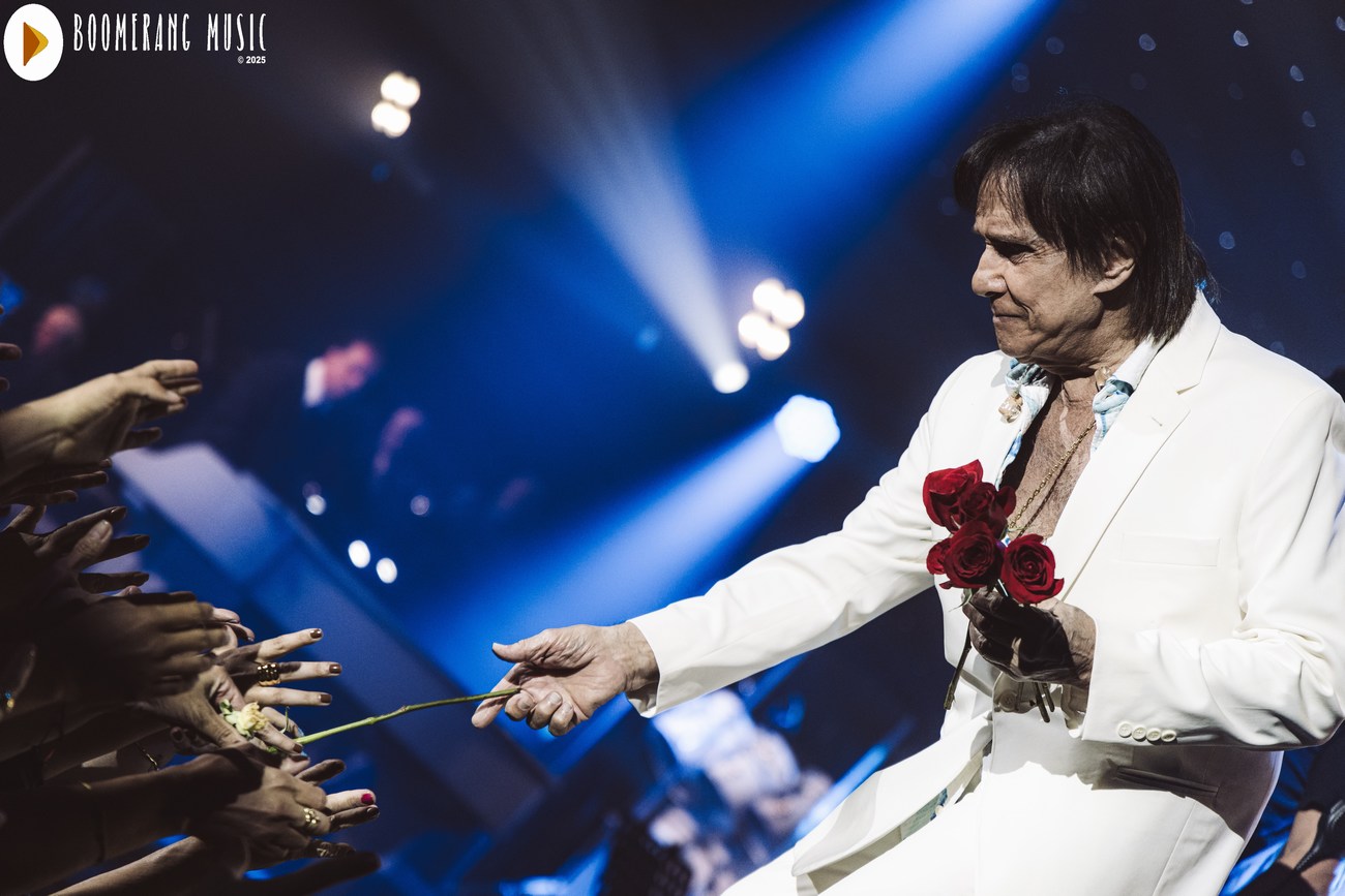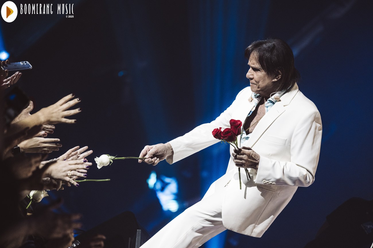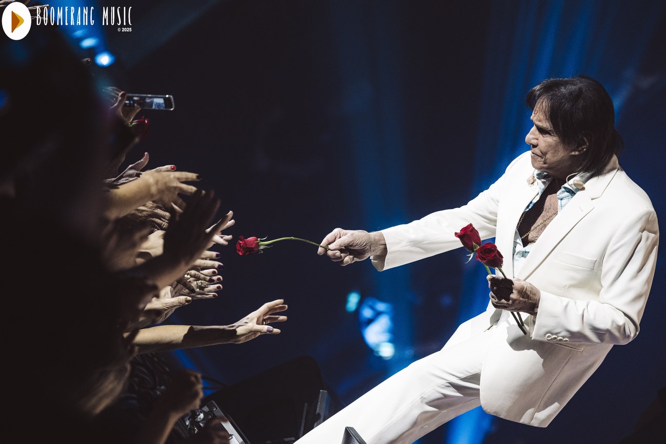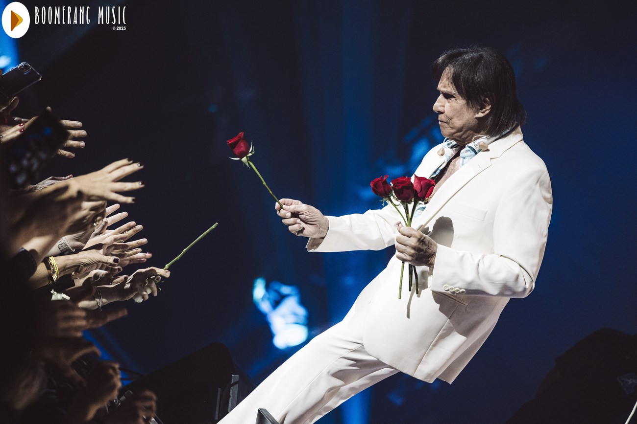 Para encerrar, Roberto interpretou “Eu Ofereço Flores”, música que dá nome à turnê. E então veio o gesto mais tradicional e simbólico de seus shows: a distribuição de rosas, um momento que emociona tanto quanto a própria canção.