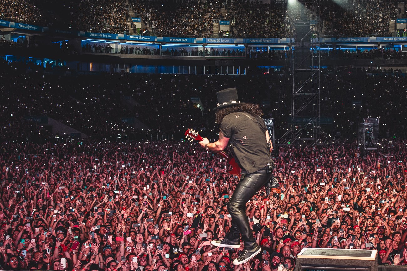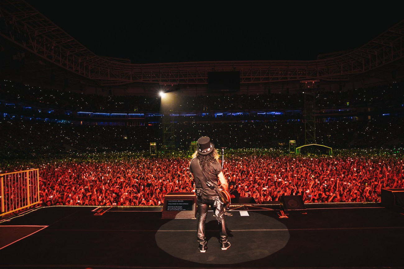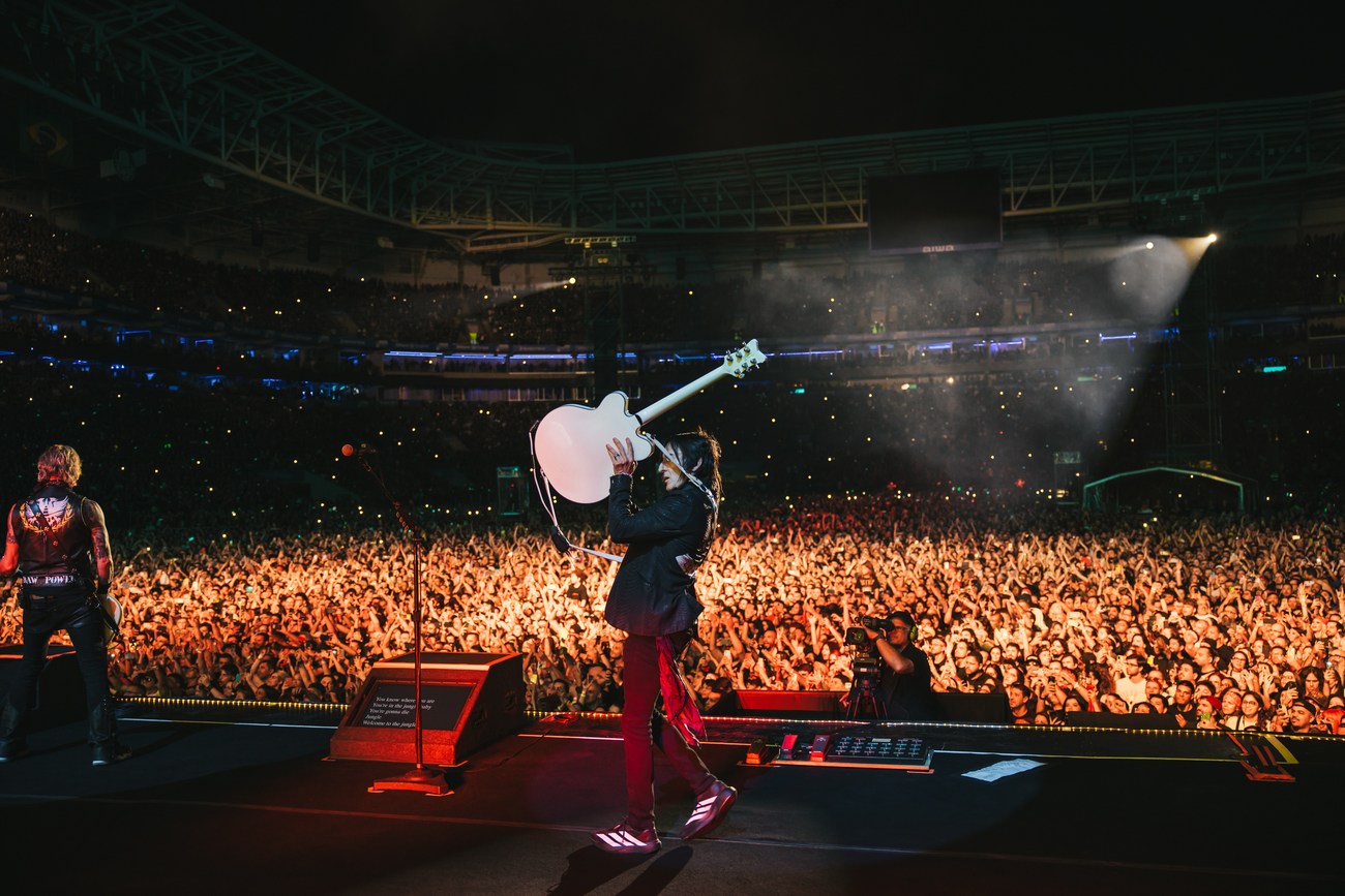 Na noite do último sábado (25), o Guns N’ Roses fez história novamente em São Paulo, levando mais de 50 mil fãs ao Allianz Parque em um espetáculo arrebatador de pouco mais de três horas de duração. A apresentação faz parte da nova turnê mundial intitulada “Because What You Want and What You Get Are Two Completely Different Things”, que marca mais um capítulo da longeva e poderosa trajetória da banda californiana.