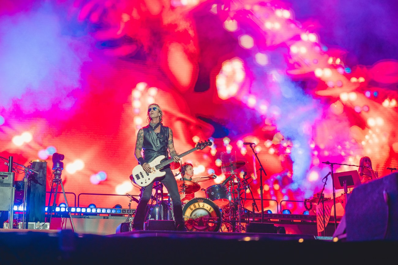 Desde os primeiros acordes de “Welcome to the Jungle”, ficou claro que o público estava prestes a assistir a uma noite especial. Axl Rose, Slash e Duff McKagan, acompanhados por Richard Fortus (guitarra), Dizzy Reed (teclados e piano), Melissa Reese (teclados) e Isaac Carpenter (bateria), mostraram uma sintonia afiada e um vigor impressionante — algo notável para uma banda com quase quatro décadas de estrada.