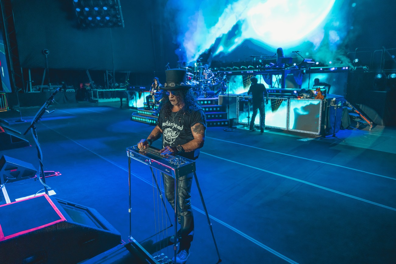 O Guns também surpreendeu ao incluir músicas mais recentes, como “Hard Skool”, “The General” e “Perhaps”, além de uma série de covers que reforçam suas influências — entre eles, “Live and Let Die” (Wings), “Knockin’ on Heaven’s Door” (Bob Dylan), “Slither” (Velvet Revolver) e homenagens a Ozzy Osbourne, com versões poderosas de “Sabbath Bloody Sabbath” e “Never Say Die”.