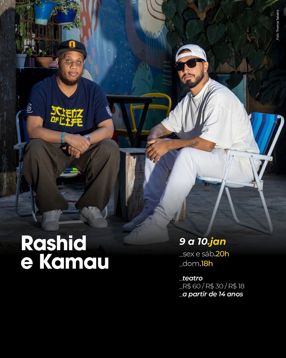 Dias 09, 10 e 11 de janeiro de 2026, dois nomes do rap brasileiro, Rashid e Kamau se apresentam no Sesc Santana em um show que reúne a parceria construída ao longo dos anos e a trajetória individual de cada um. No palco, os artistas retomam o EP colaborativo Seis Sons, lançado em 2014, trabalho que marcou o encontro entre os dois rappers da cena paulistana.