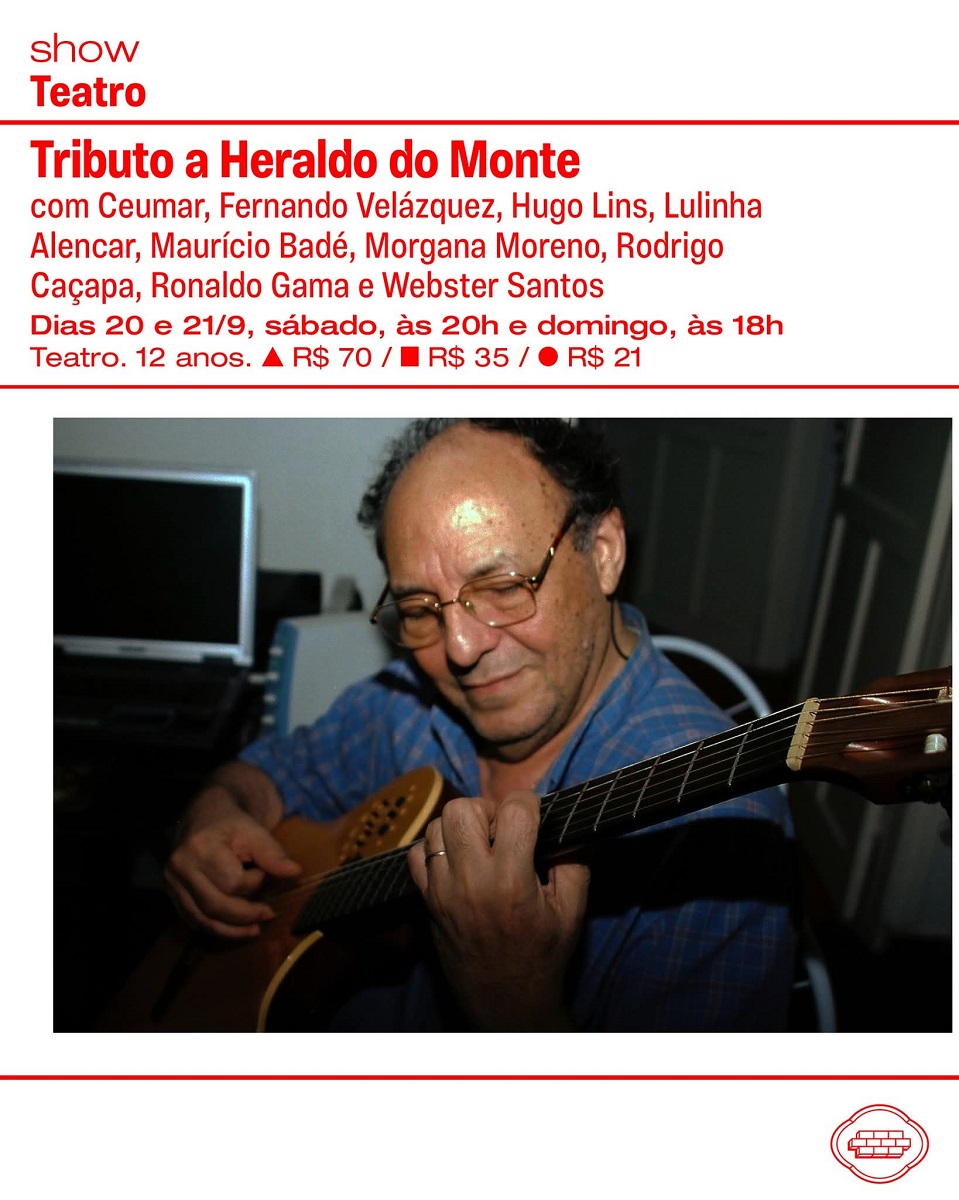Nos próximos dias 20 e 21 de setembro, dois shows no Sesc Pompeia celebram a obra e a vida do multi-instrumentista, compositor e arranjador pernambucano Heraldo do Monte, que completou 90 anos em maio. Reunidos especialmente para a ocasião, músicos de gerações diversas, em formação inédita, revisitam composições marcantes do artista, que renovou a música instrumental brasileira a partir dos anos 1960 ao mesclar jazz e sonoridades brasileiras e nordestinas. Com participação especial da cantora e compositora Ceumar, os shows também celebram o songbook As cordas livres de Heraldo do Monte (Instituto Çarê), que reúne textos críticos e depoimentos sobre o artista, além de 58 partituras e um CD, e estará à venda no local a preços especiais.
